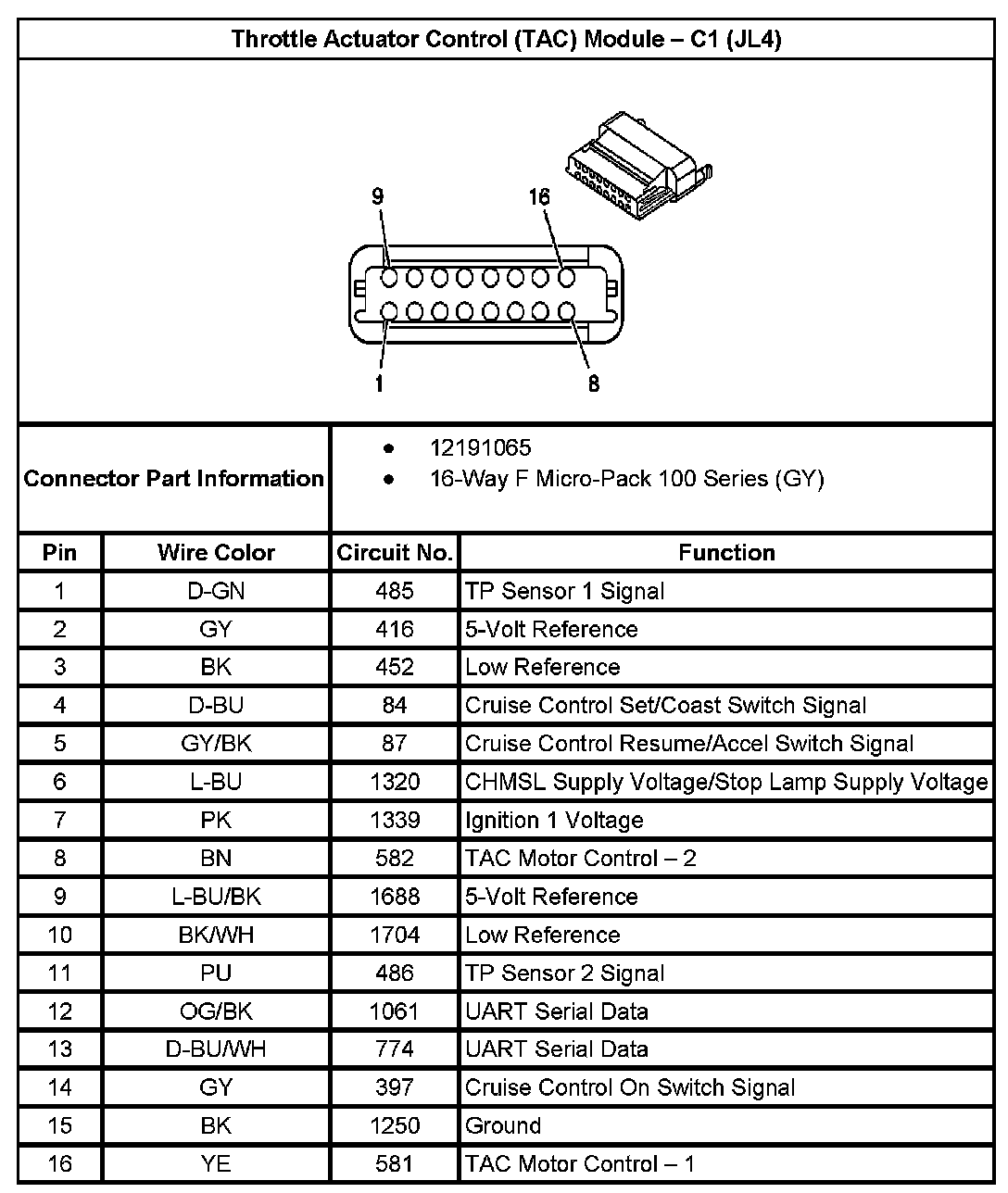 Throttle Actuator Control(TAC) Module - C1 (With RPO Code JL4):