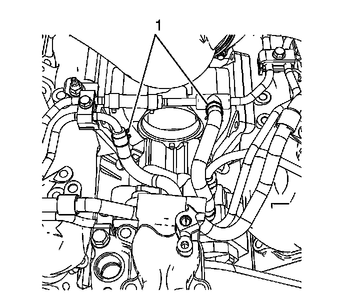 5. Position the fuel hose clamps (1) at the return/feed line as required.