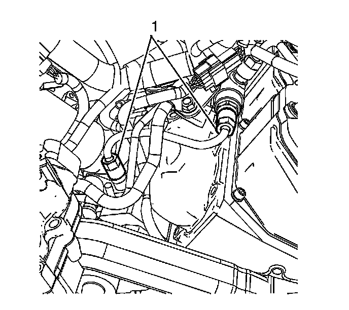 6. Disconnect the left fuel rail feed pipe fittings (1).