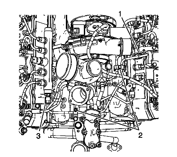 3. Connect the right fuel rail feed pipe fittings (1, 3).