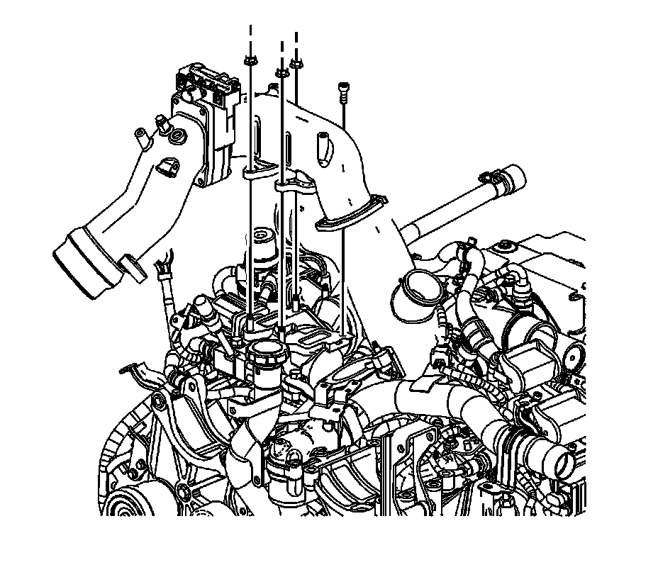 6. Remove the air inlet tube to intake manifold tube bolt and nut.
