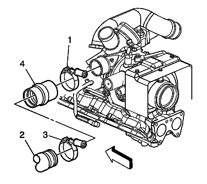 4. Install the charged air cooler inlet duct connector (4) to the turbocharger.