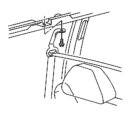 3. Remove the upper seat belt guide retaining bolt from the seat belt guide.