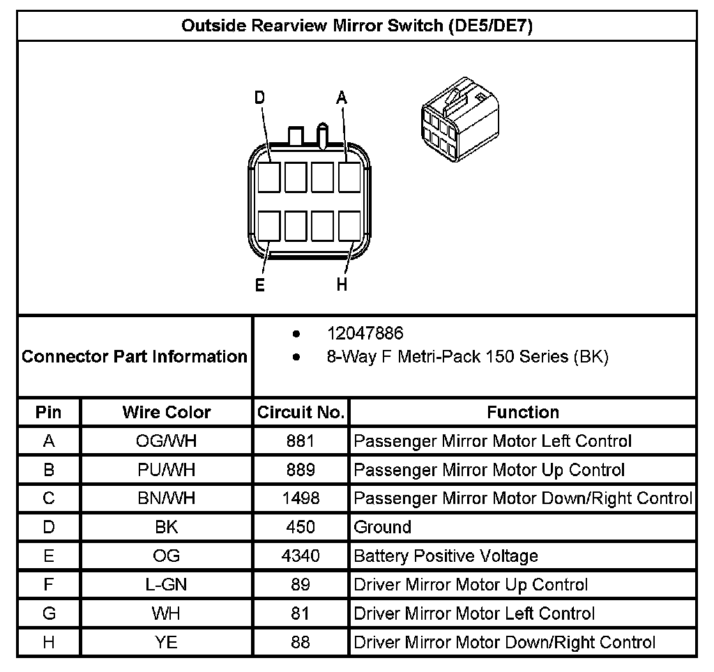 Power Mirror Switch: Diagrams