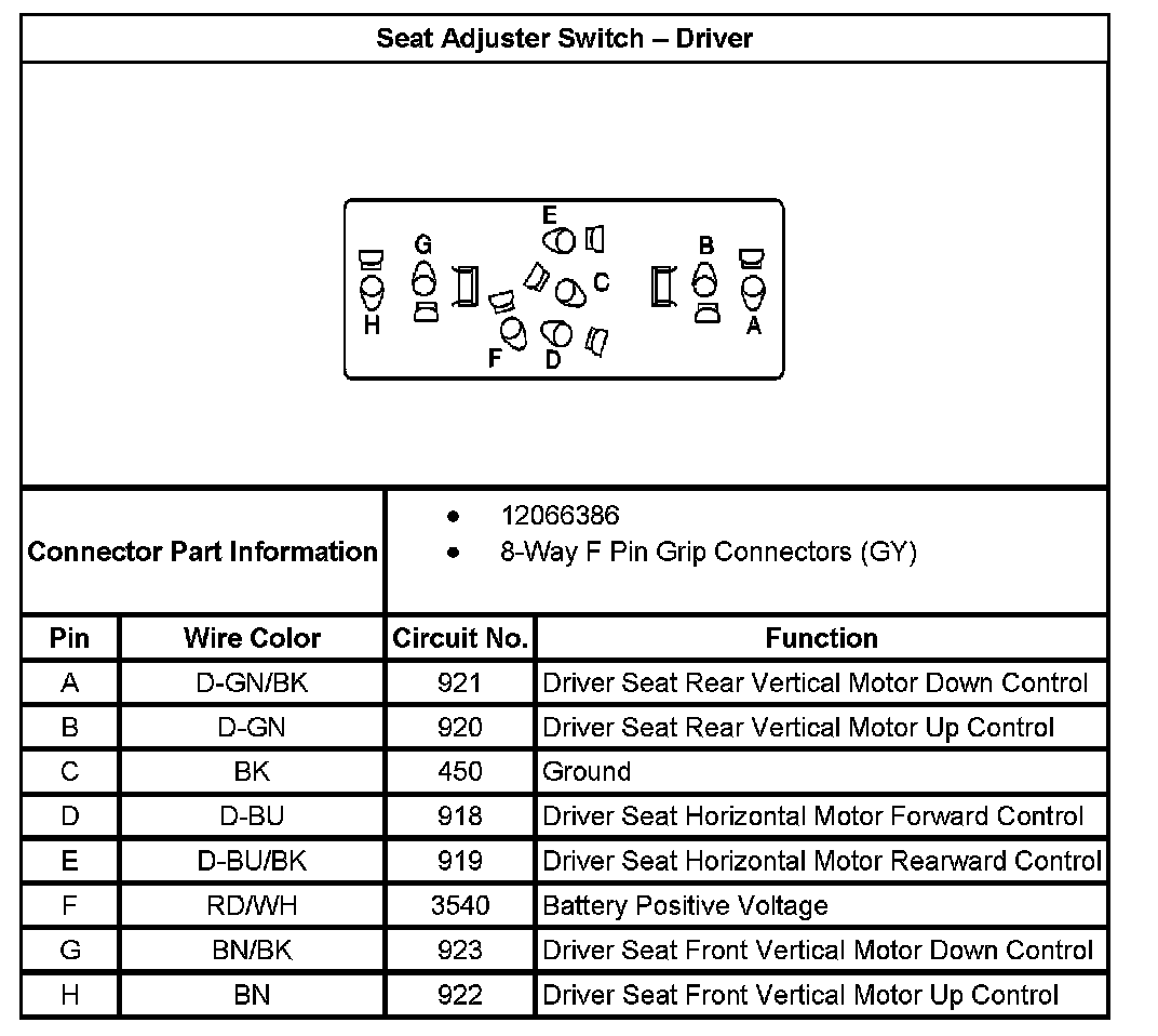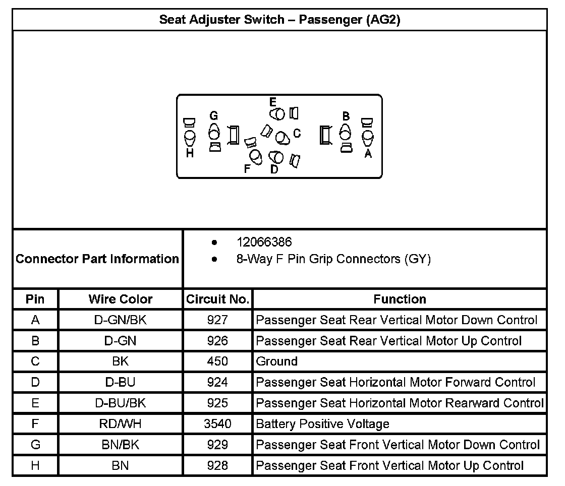 Seat Adjuster Switch - Passenger (With RPO Code AG2):