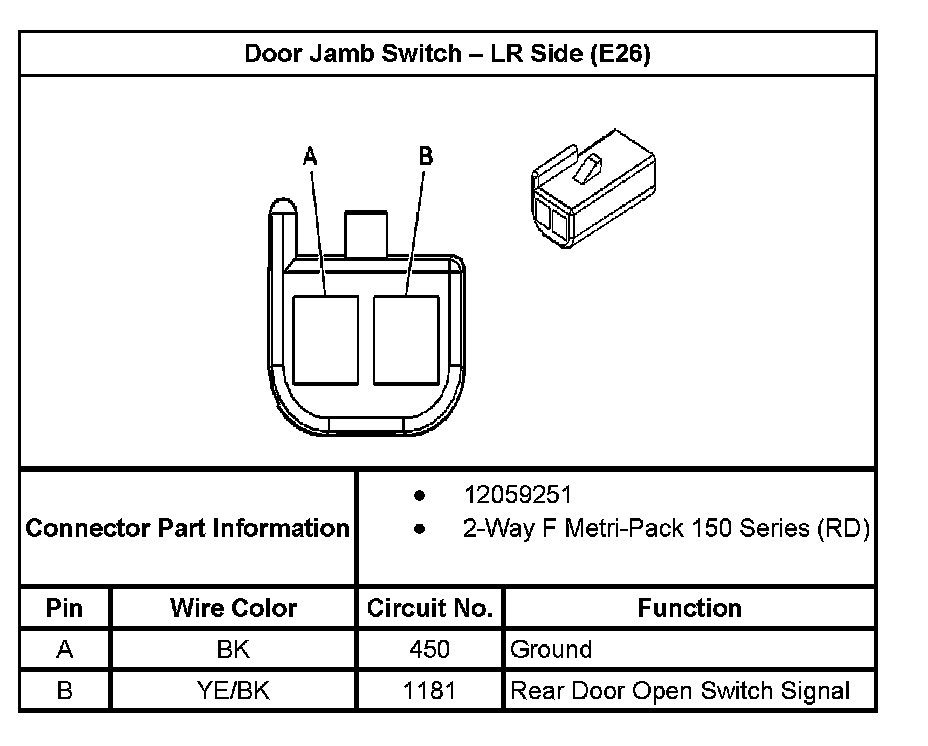 Door Jamb Switch - LR Side (With RPO Code E26):