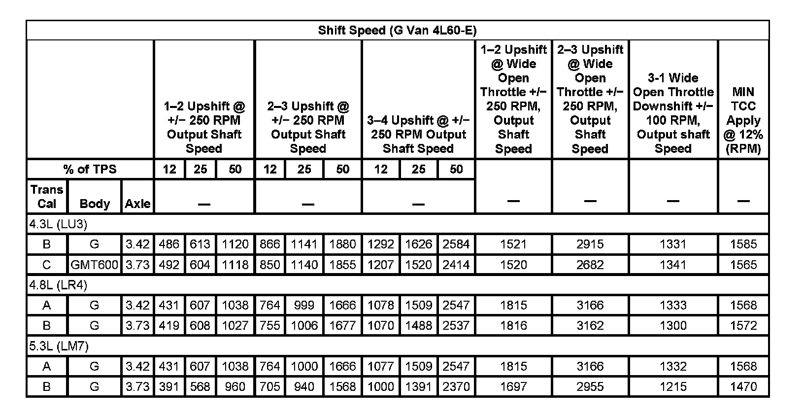 Shift Speed (G Van 4L60-E):