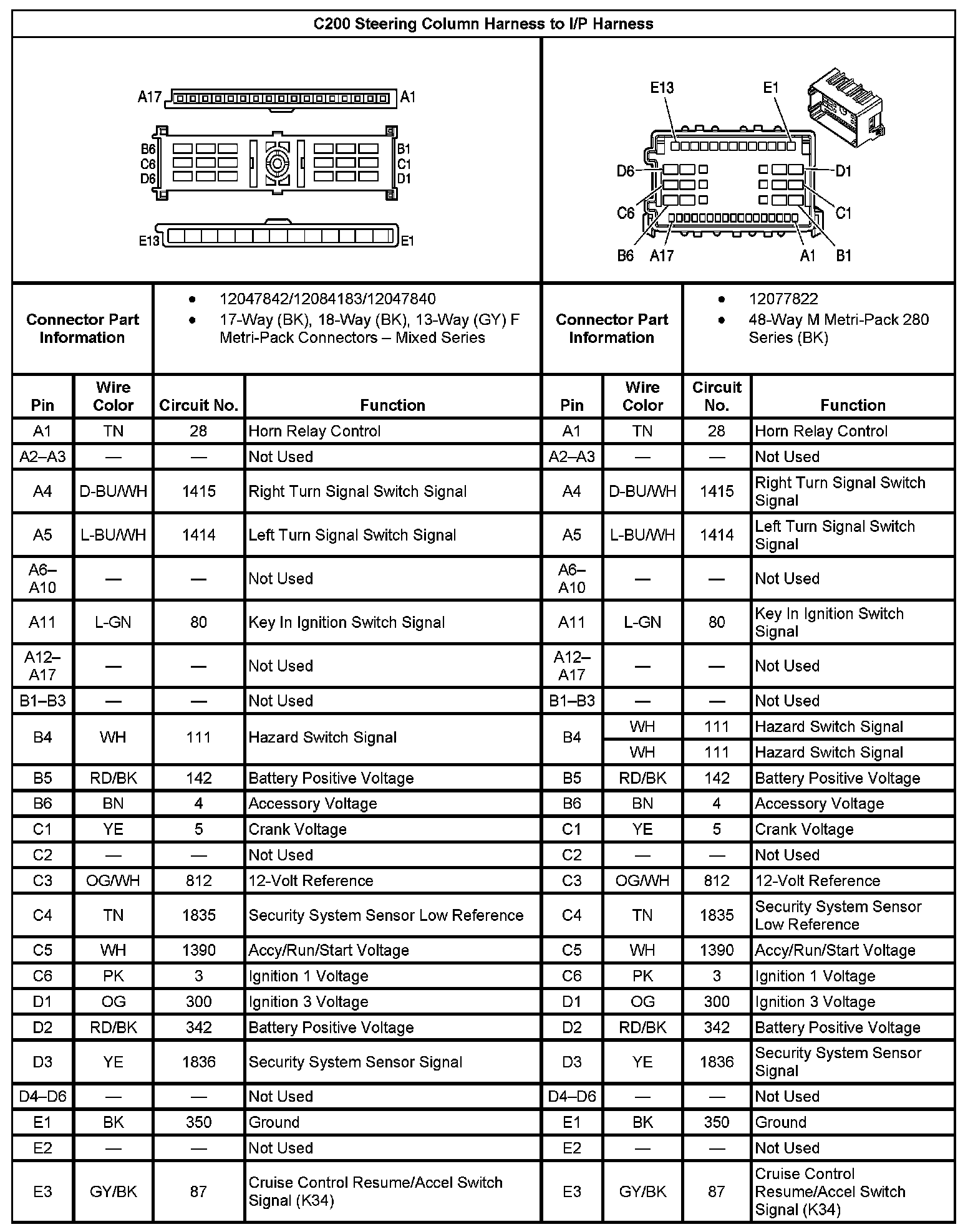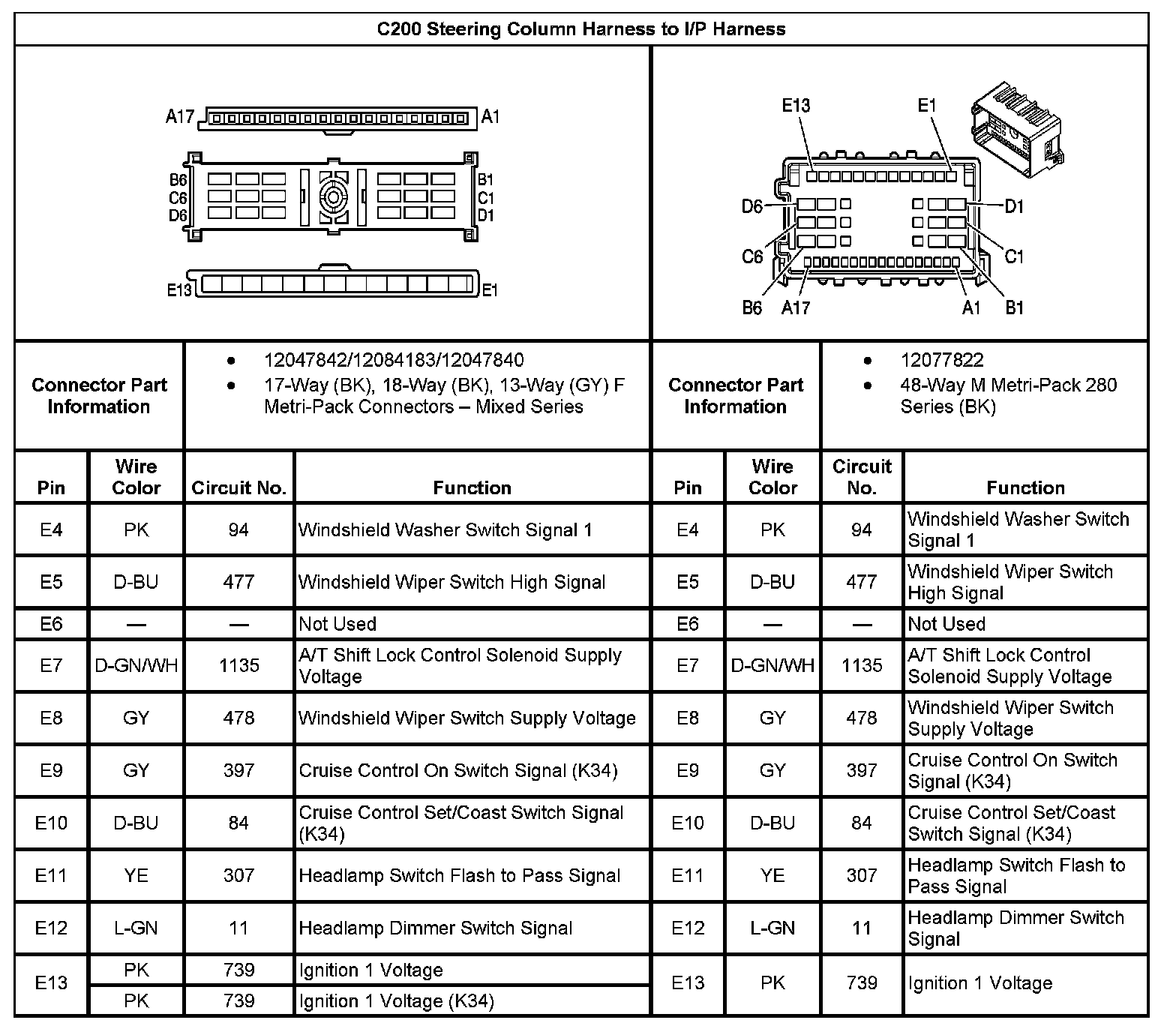 C200 Steering Column Harness to I/P Harness (Part 1):
