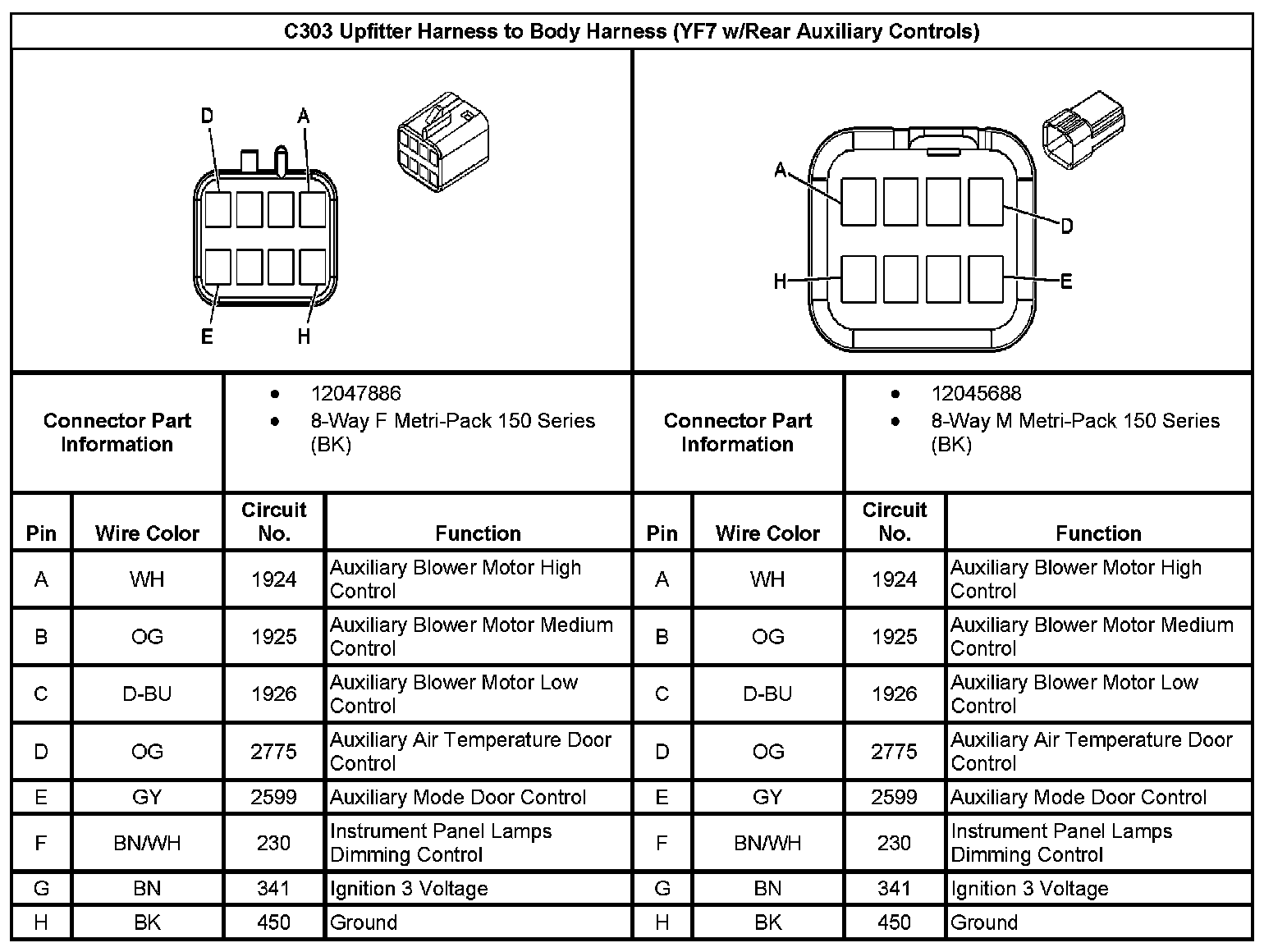 C303 Upfitter Harness to Body Harness (With RPO Code YF7 Rear Auxiliary Controls):