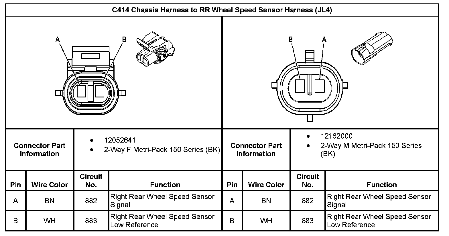 C414 Chassis Harness to RR Wheel Speed Sensor Harness(With RPO Code JL4):