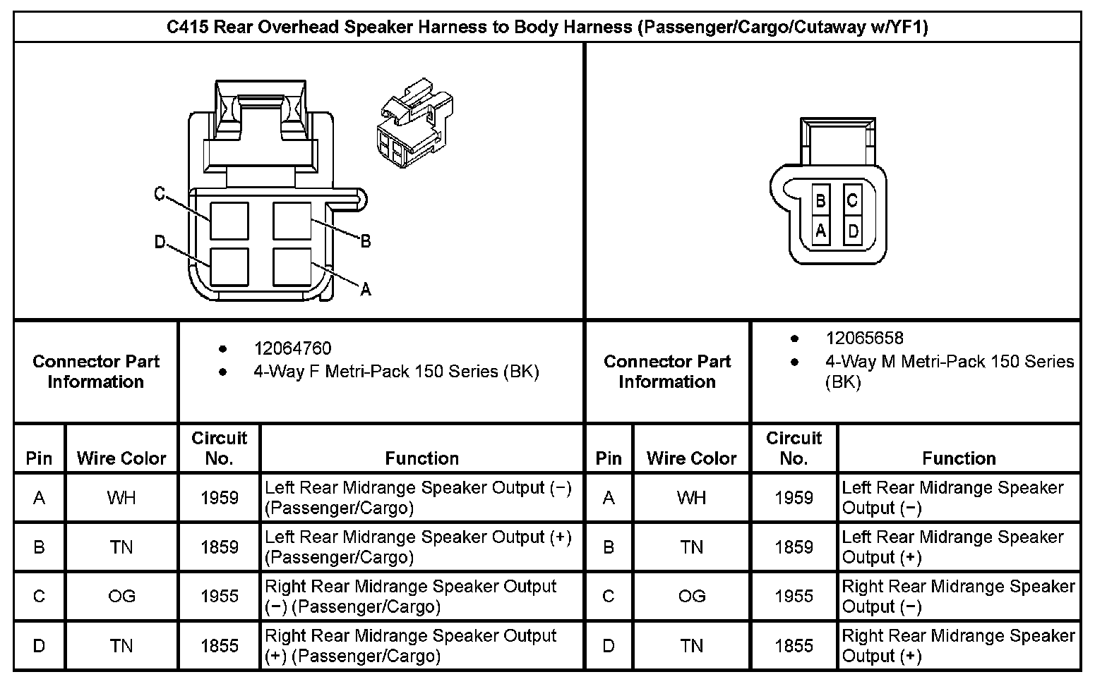 C415 Rear Overhead Speaker Harness To Body Harness (Passenger/Cargo/Cutaway/With RPO Code YF1):
