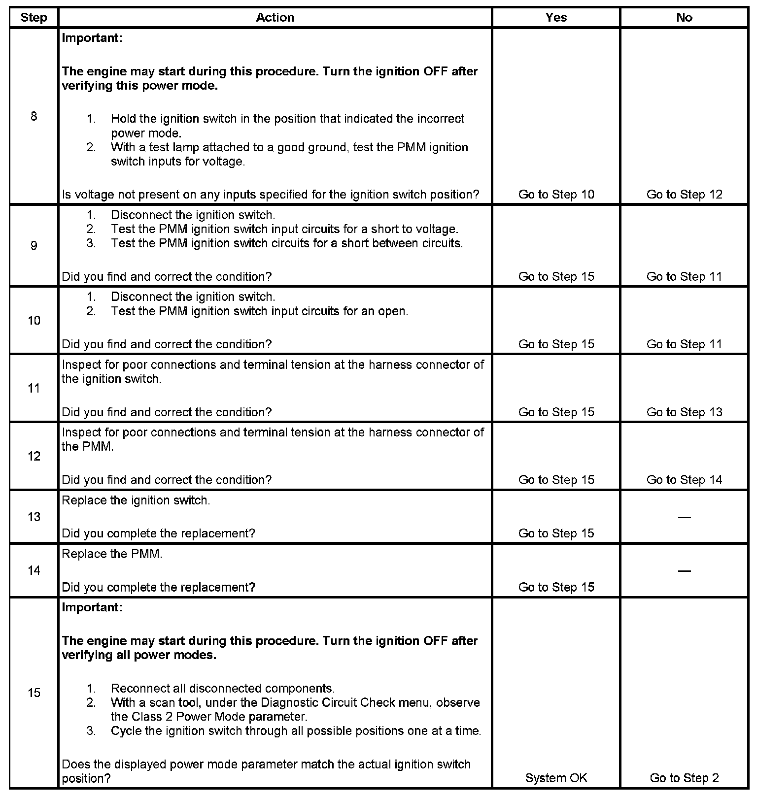 9. If any ignition switch parameters that should be inactive in the present ignition switch position are active, 2 ignition switch signal circuits may be shorted together.