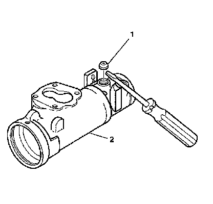 Remove the check valve (1) from the steering gear housing (2) using a small screwdriver.