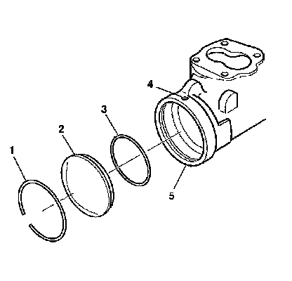4. Install the retaining ring (1). Ensure that the retaining ring open end is approximately 25 mm (1 inch) from the access hole in the steering gear housing (5).
