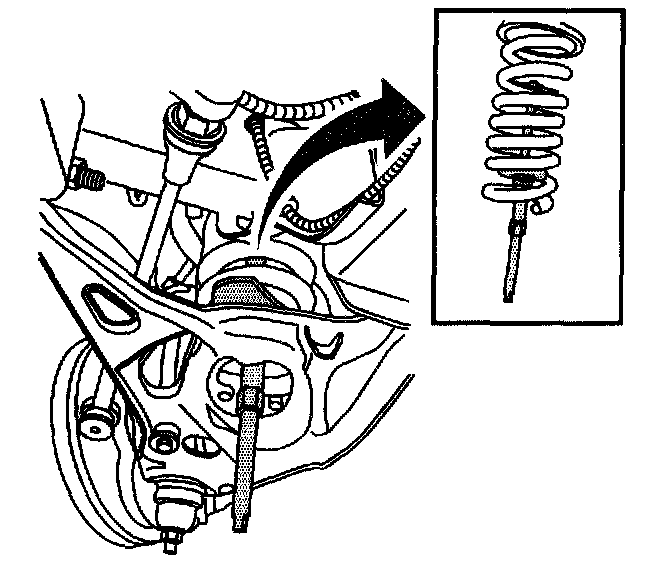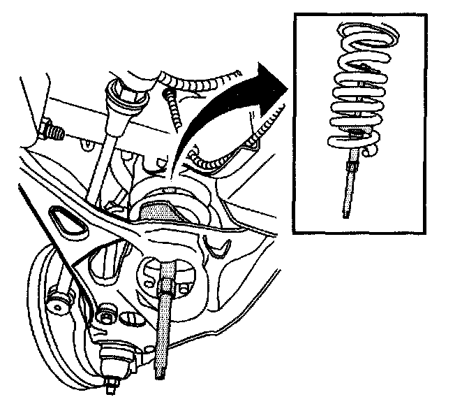 7. Compress the front coil spring using OTC 7045-B coil spring compressor tool or equivalent and remove all tension from the lower control arm.