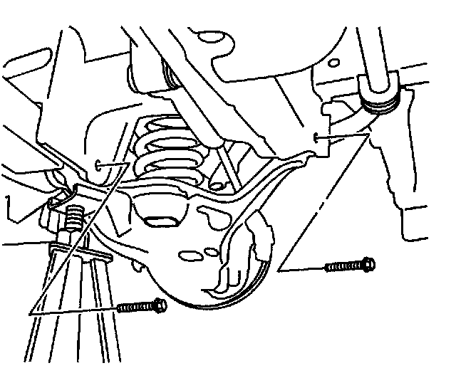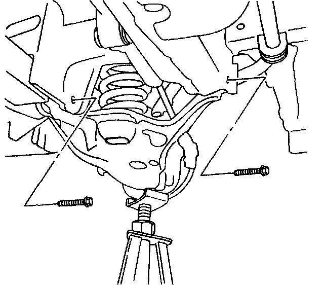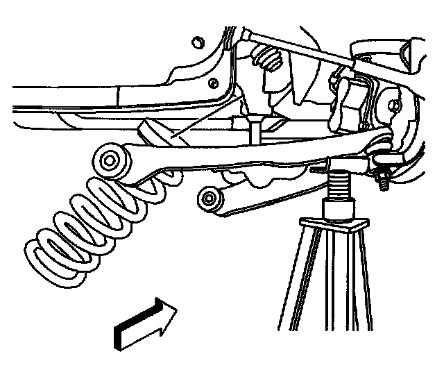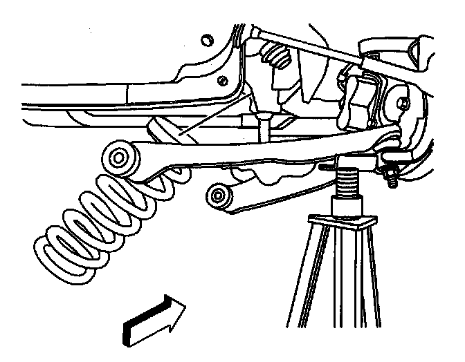4. Raise the lower control arm into position and place a suitable safety jack under the lower control arm rear leg near the bushing.