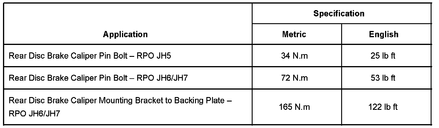 This bulletin is being issued to revise the Fastener Tightening Specifications in the Disc Brakes sub-section of the Service Manual. Please replace the current information in the Service Manual with the following information.
