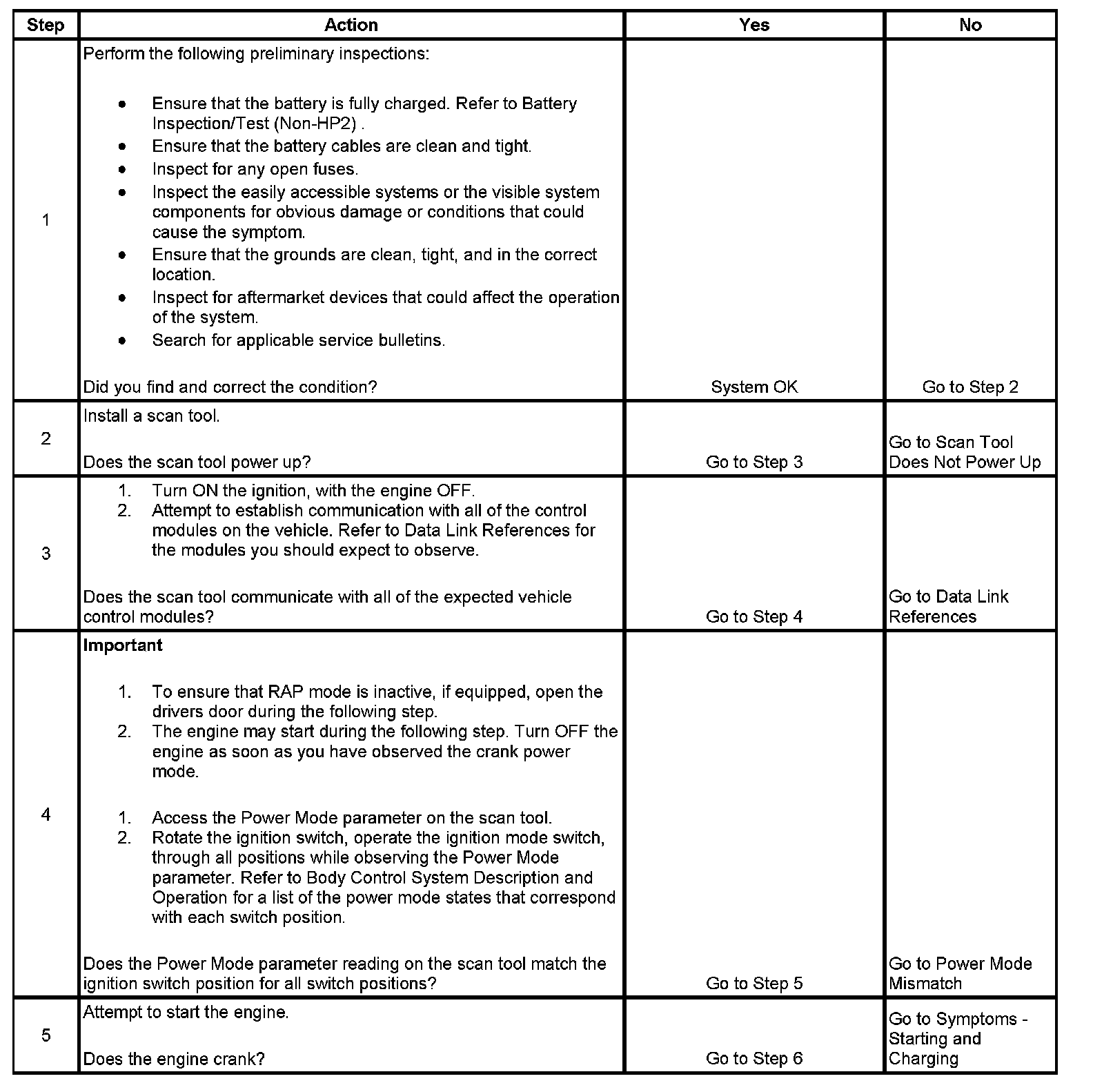 4. A module that is operating in the incorrect power mode based on key position may cause other vehicle symptoms and/or DTCs to set. The information in Power Mode Mismatch will correct the condition before checking for module DTCs or symptoms.