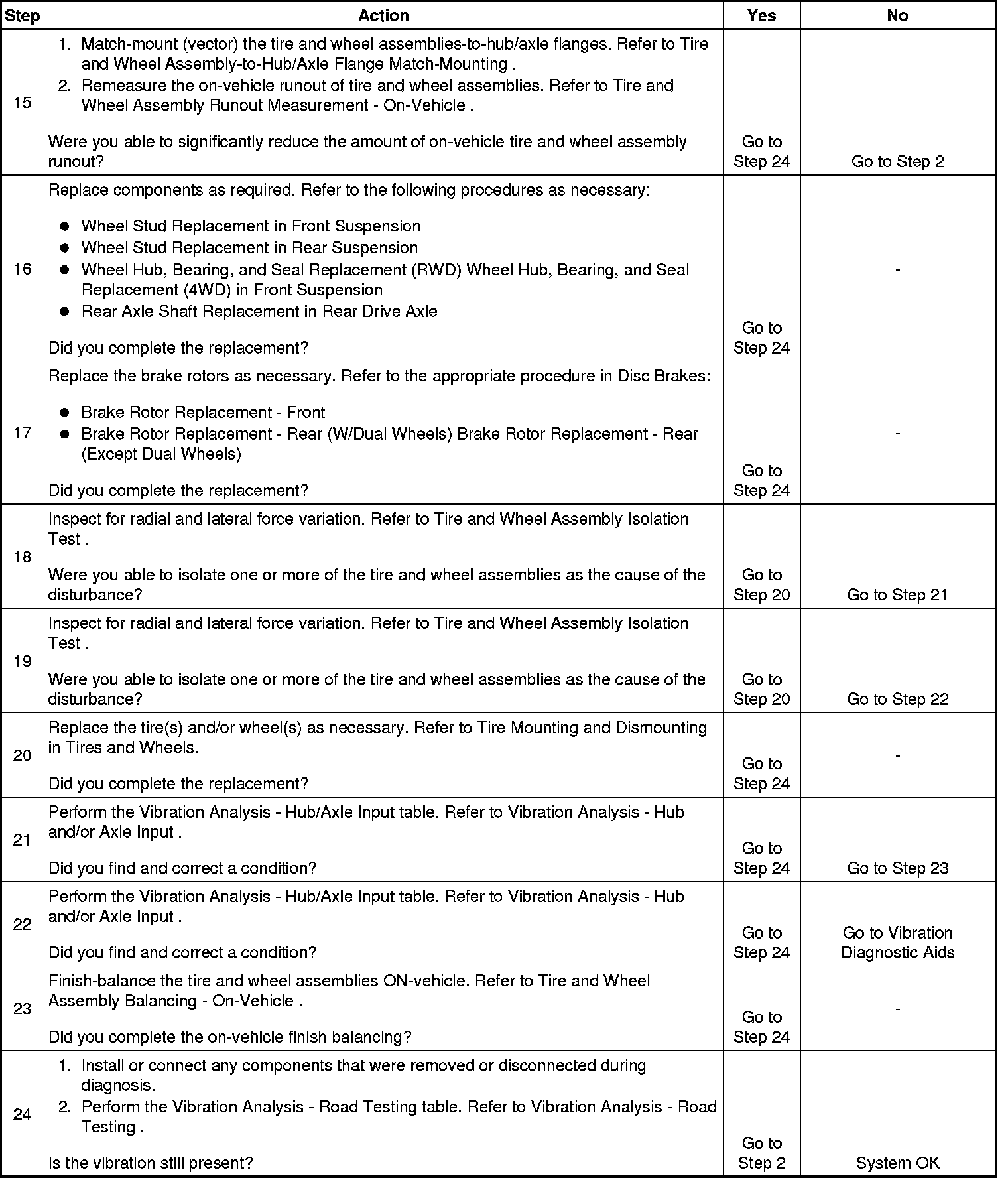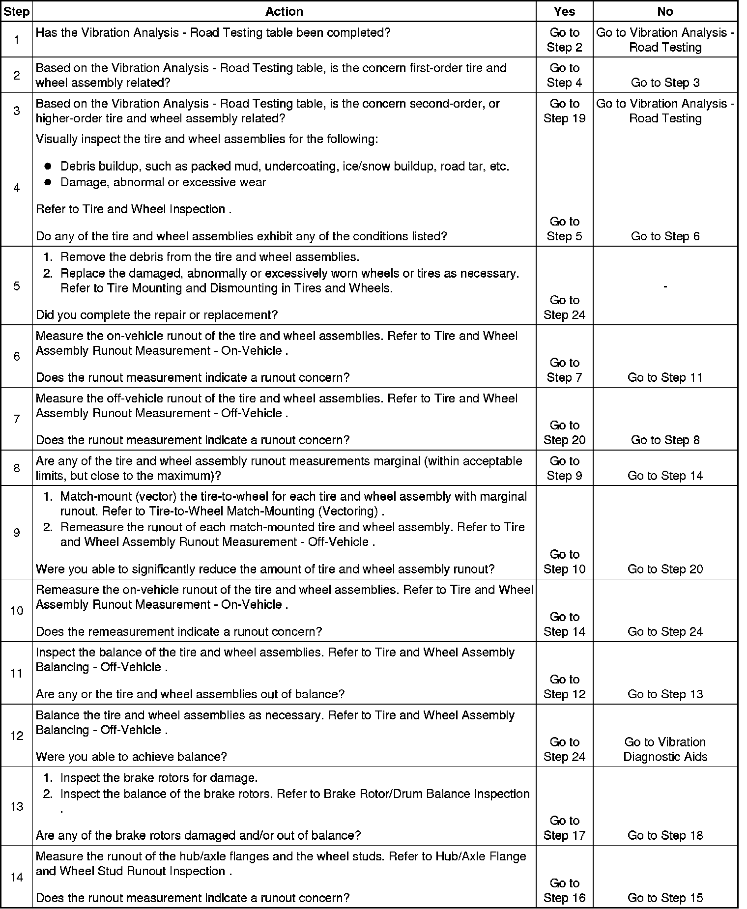7. Tire and wheel assemblies that exhibit excessive runout when measured off of the vehicle could cause a vibration disturbance.