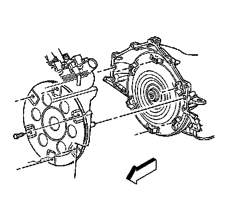 12. Remove the bolts that attach the torque converter to the engine flywheel.
