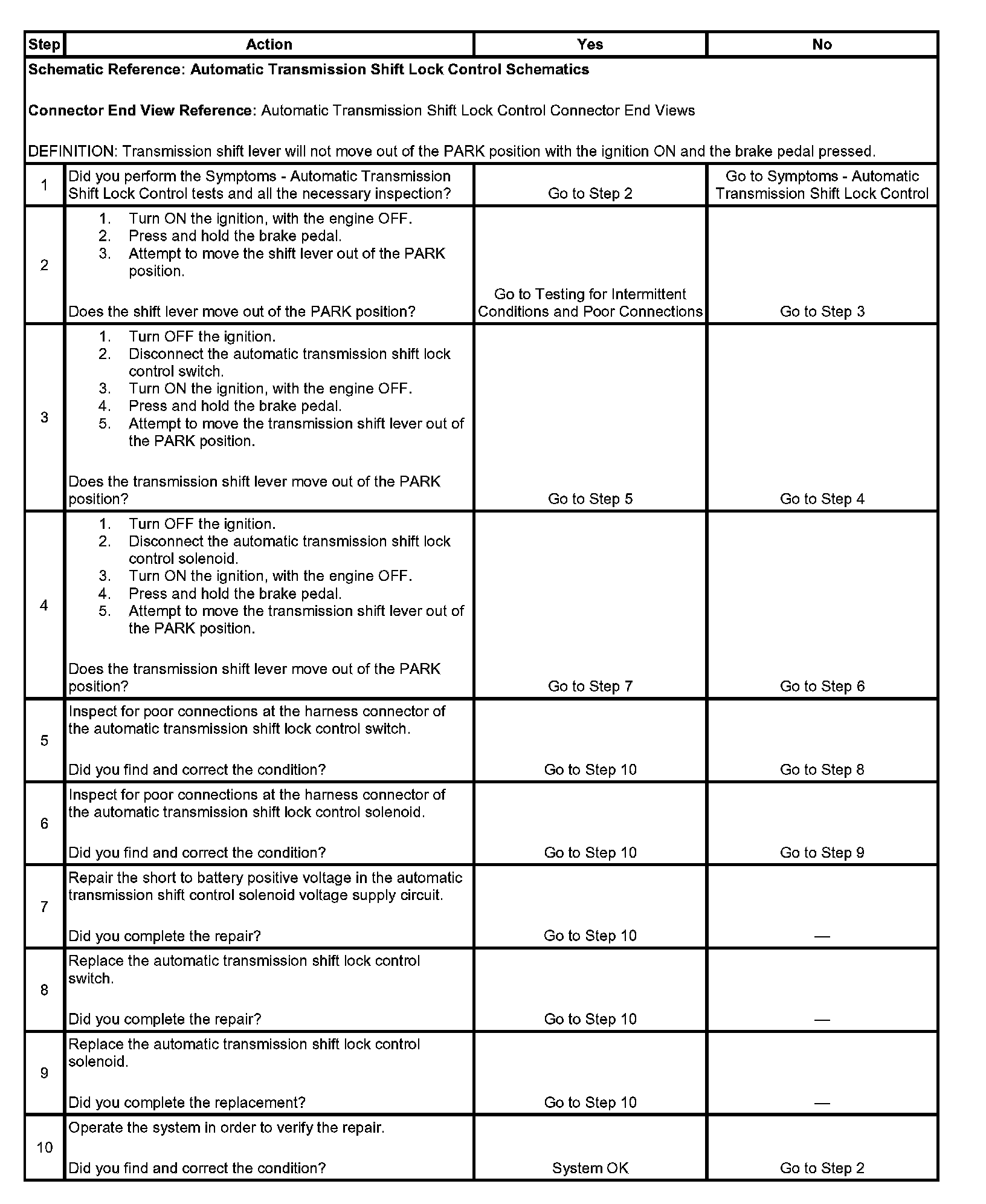 Shift Lever Does Not Move With Brake Pedal Depressed