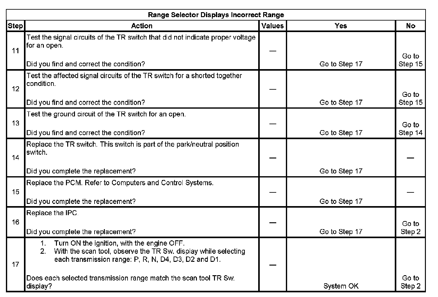 5. This step tests the TR switch wiring for an open or the lack of the signal voltage from the PCM.