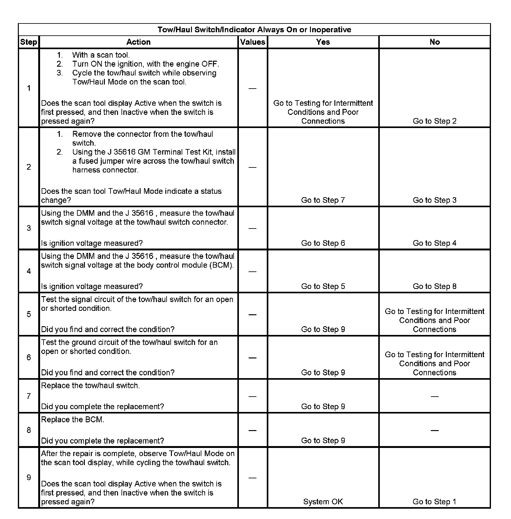 2. This step tests for a faulty tow/haul switch.