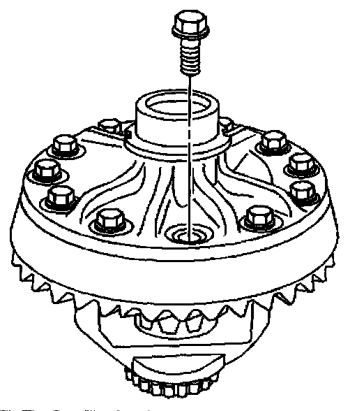 Hand start each bolt to ensure that the ring gear is properly installed to the differential case.