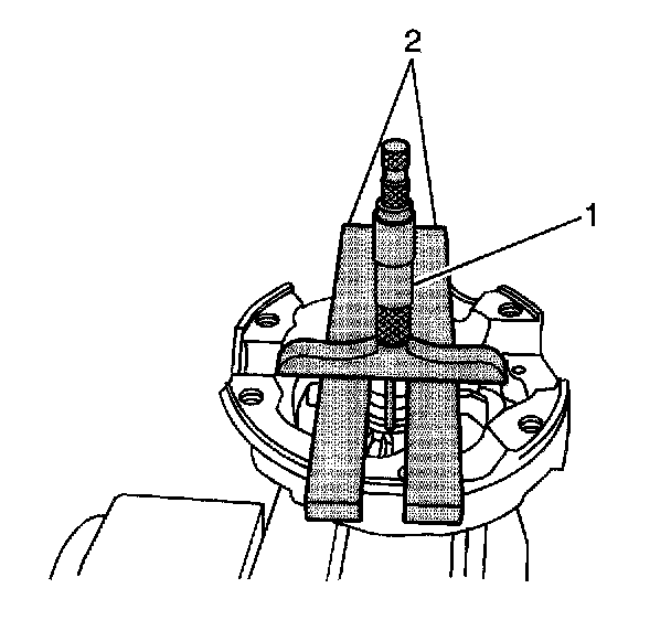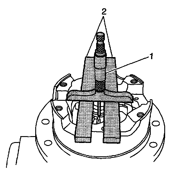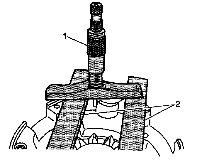 7. Install the J34673 (2) and the J34672 (1) onto the differential case as shown.