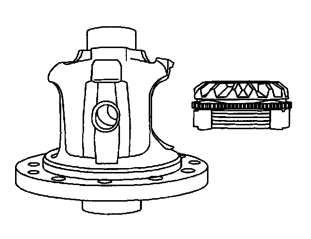 2. Install the locking differential side gear cam unit and clutch disc assembly into the left side or flange-end of the differential case.