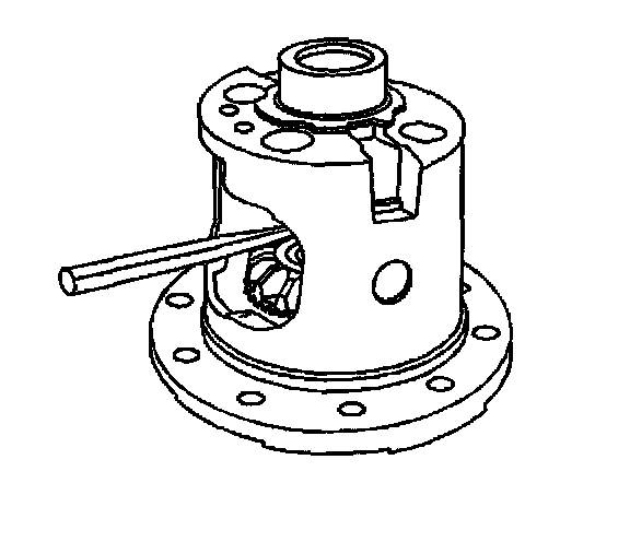 4. Install the pinion shaft. It may be necessary to press down on the side gear in order to align the pinion gear shaft opening with the pinion shaft opening in the differential case.