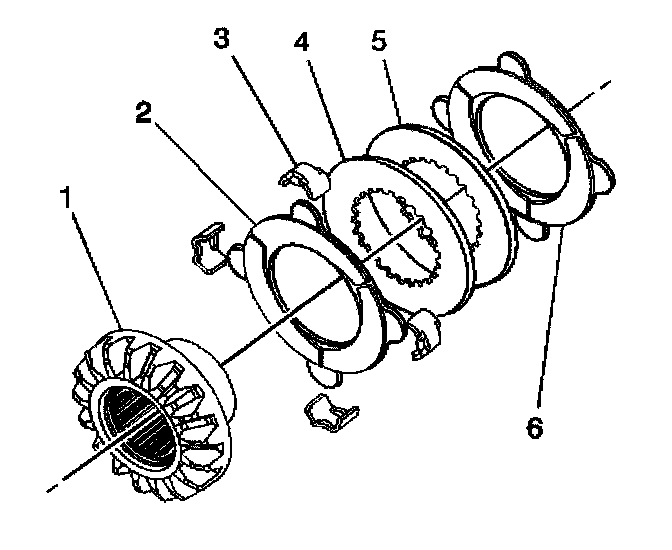 Locking Differential Clutch Disc Assembly - Assemble (8.6 Inch Axle)1. Apply axle lubricant, GM P/N 12378261 (Canadian P/N 10953455) or equivalent meeting GM Specification 9986115, to the surface of each disc.