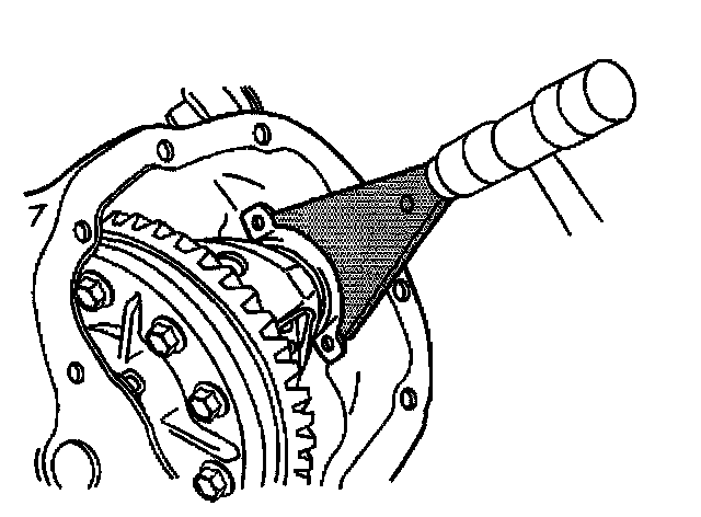 ^ Adjust the thickness of the shim pack on each side of the differential in equal amounts. This will maintain the correct differential side bearing preload.