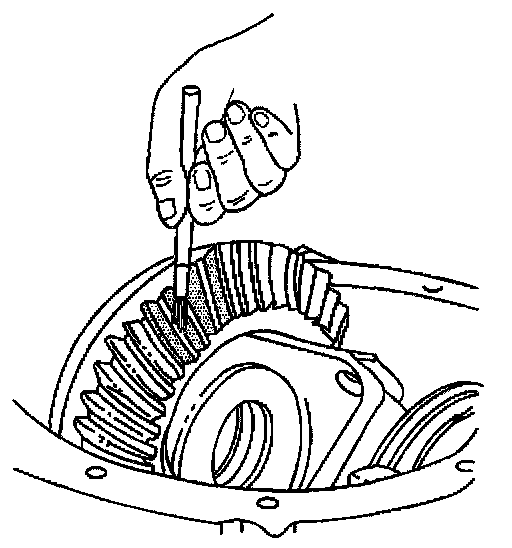 2. Use a medium stiff brush in order to sparingly apply gear marking compound, GM P/N 1052351 (Canadian P/N 10953497) or equivalent, to all of the ring gear teeth.