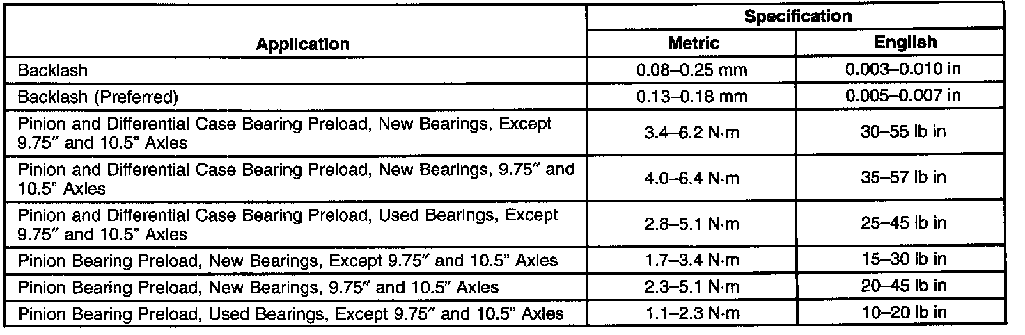 Axle Preload and Backlash Specifications: