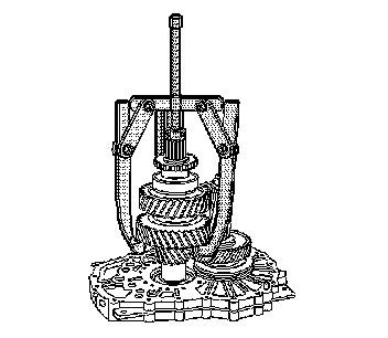 You will be using the intermediate case to pull off the 6th gear synchronizer hub and the 6th gear bushing. Ensure the J 44730 is properly located on the intermediate case.