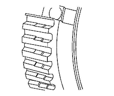 4. Inspect the synchronizer hub for wear on the external splines. A stepped effect on the teeth, due to wear, may cause shift conditions.