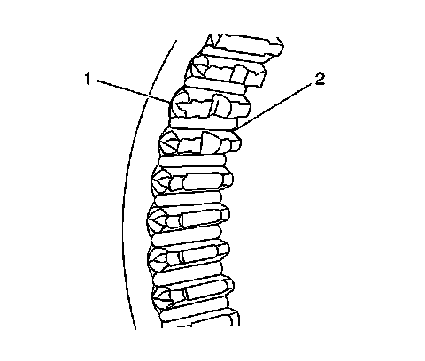 7. Inspect the synchronizer sleeve teeth (1) for the following, which may cause shift conditions: