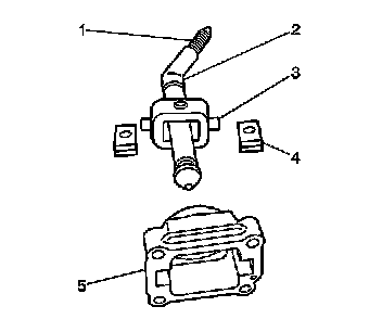 6. Inspect the shift control housing for excessive wear in the pivot pin bushing slots (5).