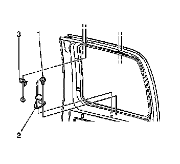 2. Install the screws that retain the hinge (3) to the door.