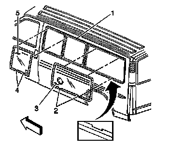 Important: The bodyside glass must be installed to the bodyside opening within 5 minutes after the urethane adhesive is dispensed.