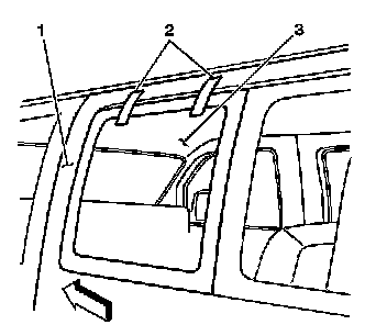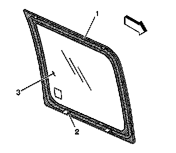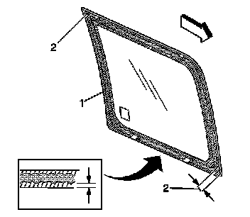 Important: Do not apply the (black #3) primer to the existing bead (1) of the urethane adhesive on the pinchweld flange. Apply the primer only to nicks, scratches or the primed surfaces.