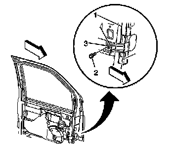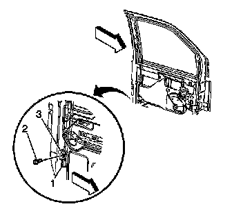 2. Remove the front door rear garnish. Refer to Garnish Molding Replacement - Front Door Rear (Removal and Replacement).
