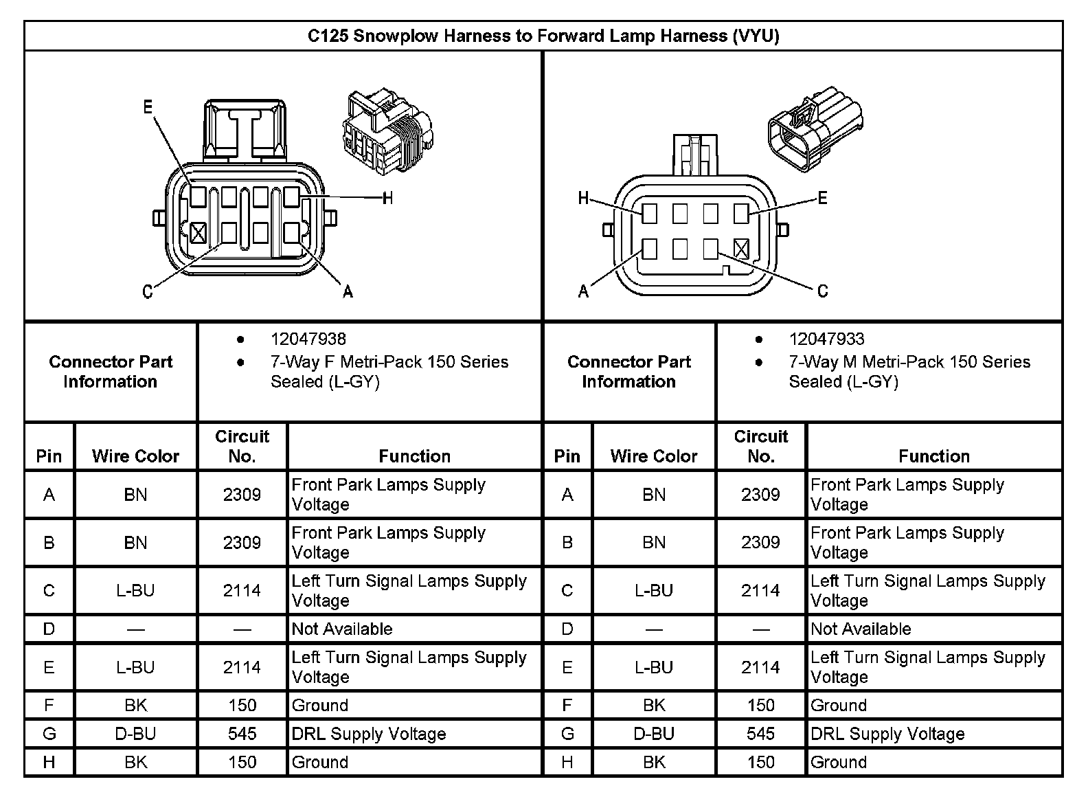 C125 Snowplow Harness To Forward Lamp Harness (With RPO) Code VYU):