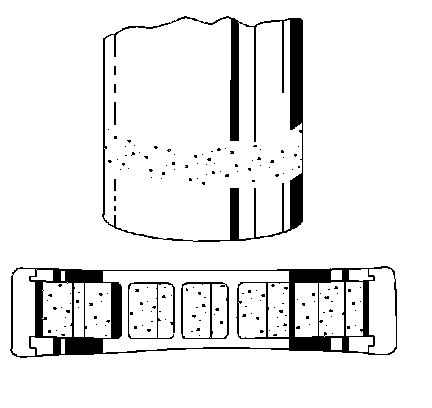 Flaking of surface metal results from fatigue, usually at both edges of the race and rollers. Replace the bearing. Clean all related parts. Replace the shaft if damaged.