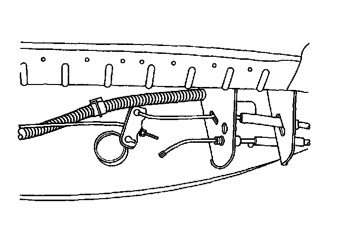9. Install the park brake cable to the equalizer bar by pulling down on the cable in front of the equalizer and installing the cable to the equalizer bar.