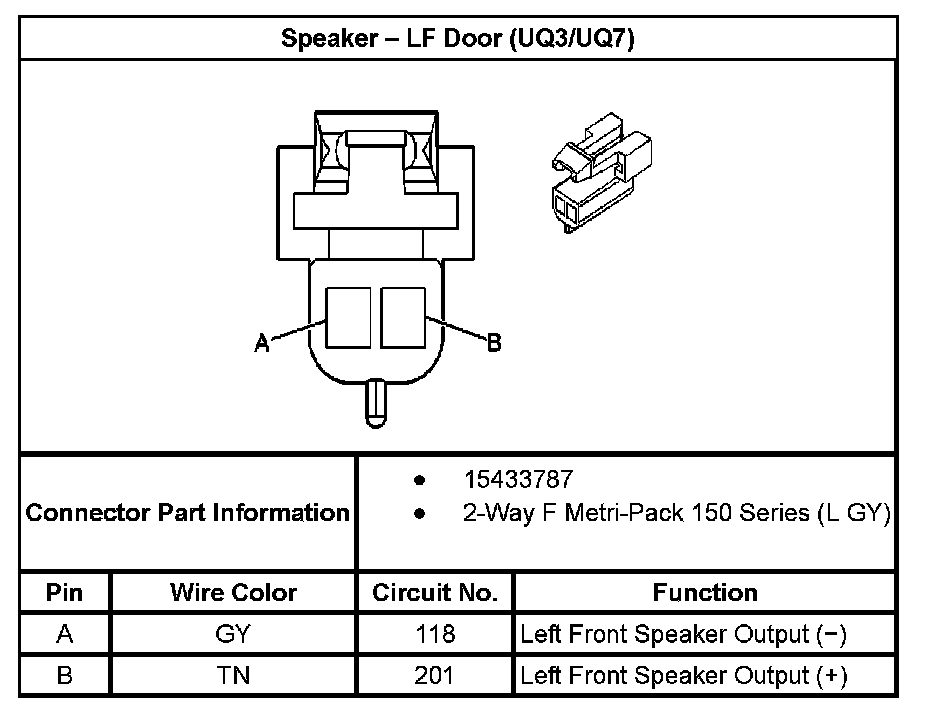 Speaker - LF Door (With RPO Code UQ3/UQ7):