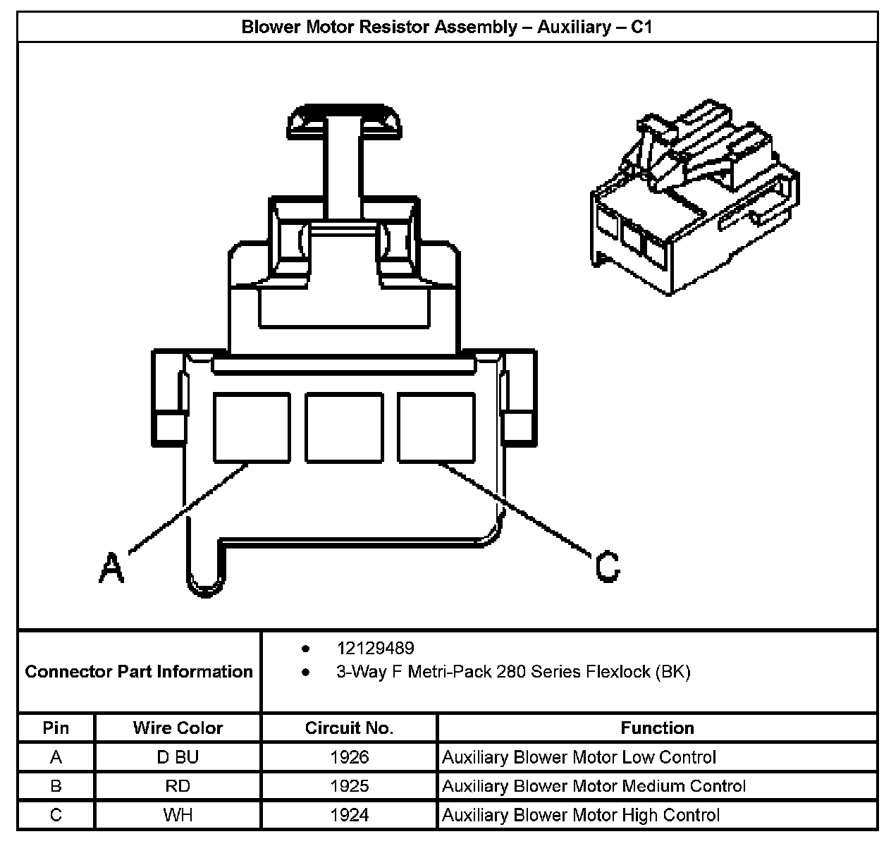 Blower Motor Resistor Assembly - Auxiliary - C1:
