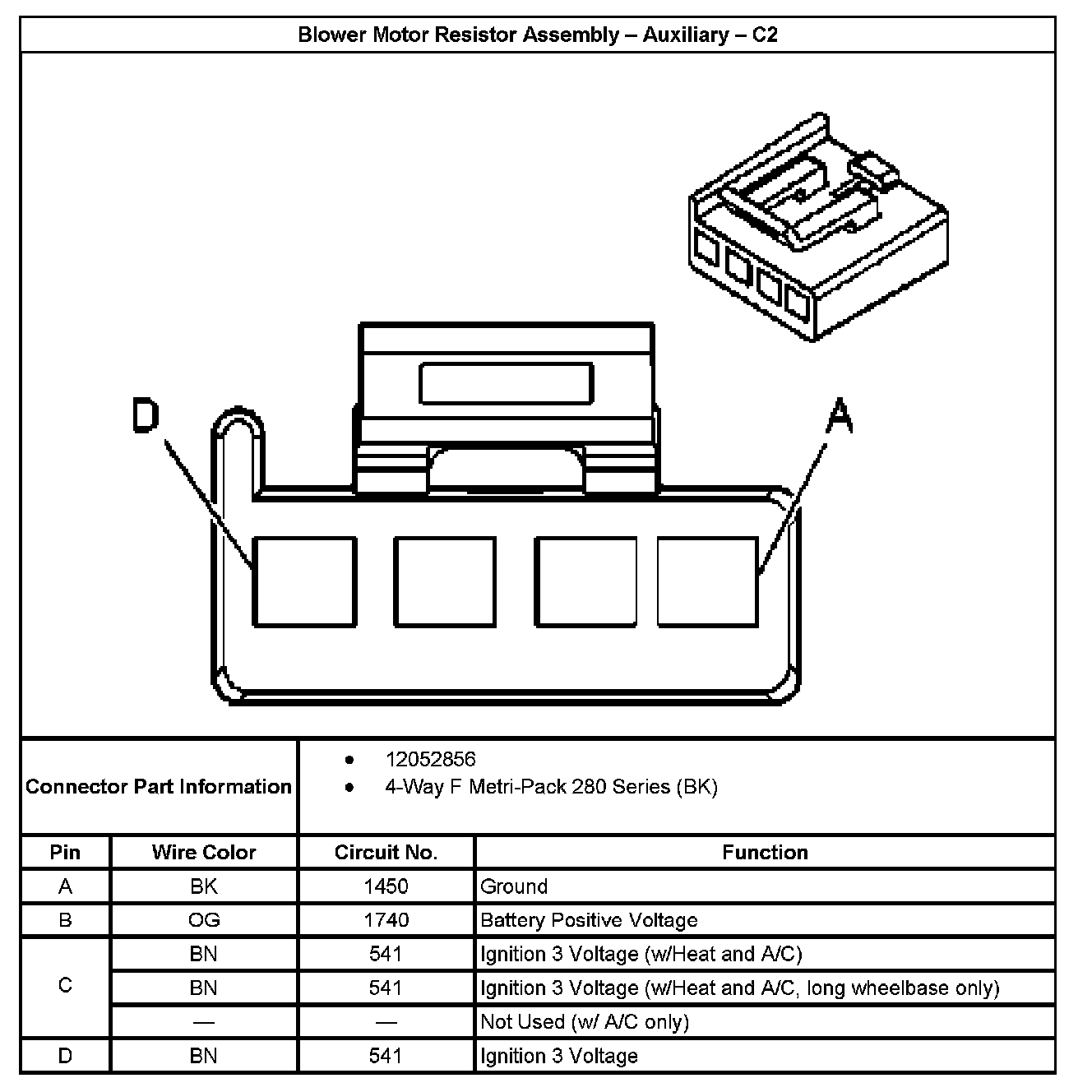 Blower Motor Resistor Assembly - Auxiliary - C2: