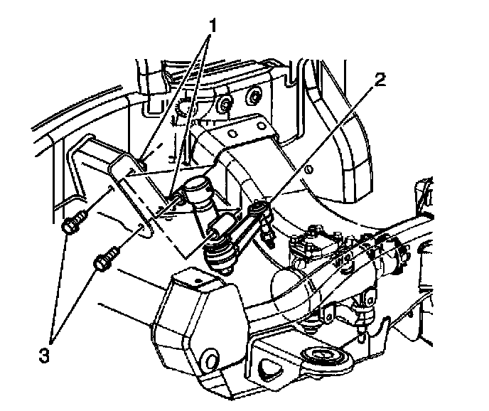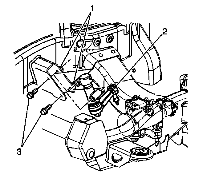 5. Remove the idler arm frame bolts (3) and the nuts (1).